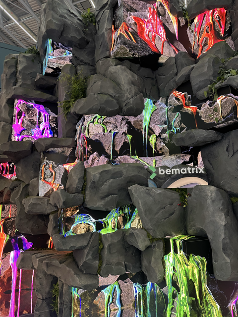 Durante a EuroShop, a diretora da GDR analisou diferentes soluções voltadas à criação de experiências no varejo. Entre os exemplos destacados está o estande da empresa BeMatrix, que utilizou uma grande estrutura cenográfica com uma montanha artificial, cascata de LED e um túnel iluminado. A instalação foi criada para eventos e exposições, mas, segundo Wilkinson, levanta questionamentos sobre o nível de impacto visual adotado em muitas lojas.