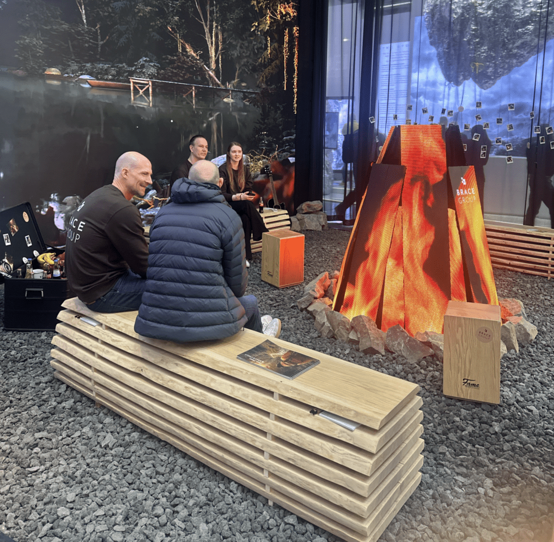 Entre as propostas voltadas à ambientação, Wilkinson citou o trabalho do grupo Brave, apresentado em um espaço digital criado pela empresa Big Concept Digital. O ambiente simulava uma floresta com telas de LED, uma fogueira digital e elementos naturais como pedras e troncos. Os visitantes eram convidados a sentar ao redor da instalação, conversar e tirar fotos.