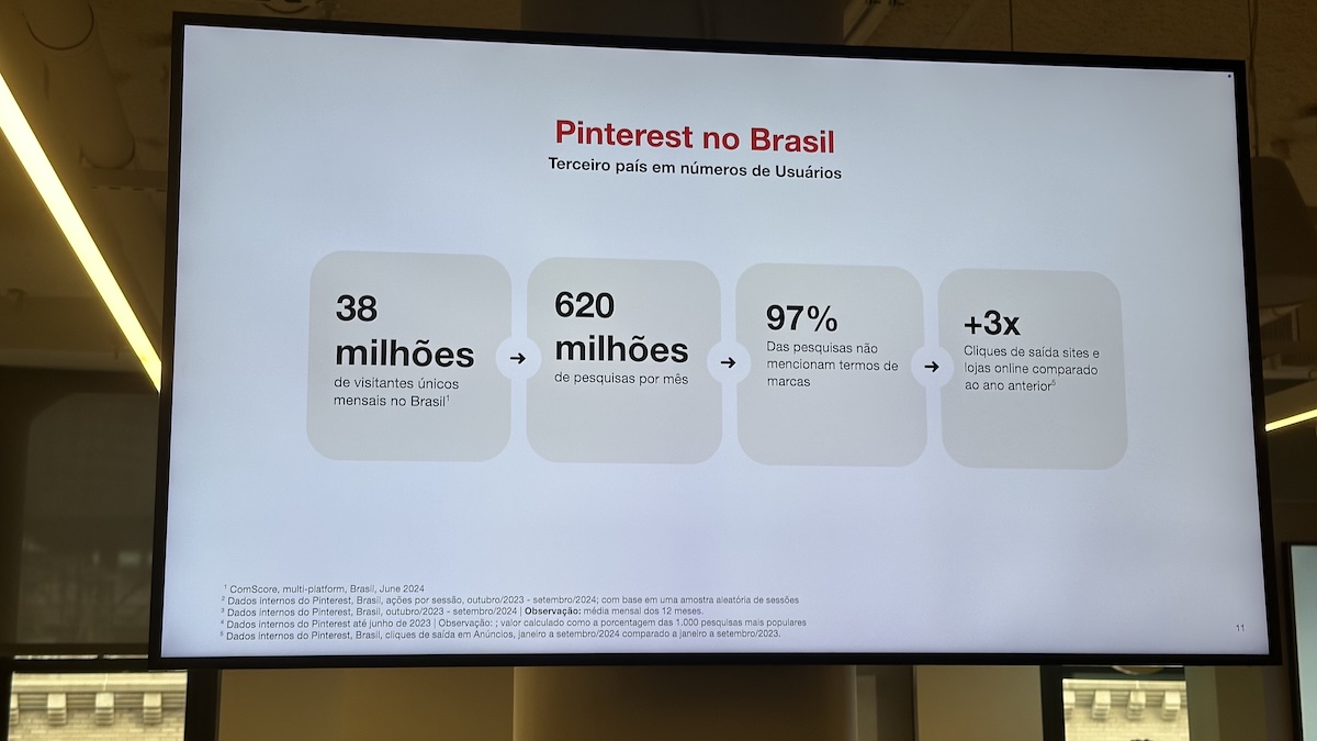 Vidal destacou que o Pinterest reúne atualmente cerca de 600 milhões de usuários ativos no mundo, que acessam a plataforma com intenção clara de planejar, comprar ou realizar projetos. No Brasil, são aproximadamente 40 milhões de usuários, responsáveis por mais de 600 milhões de buscas mensais. Um ponto relevante, segundo ela, é que a maior parte dessas buscas não é feita por marca, mas por ideias, estilos ou necessidades, o que permite que empresas de diferentes portes se conectem com consumidores ainda no início da jornada de compra.