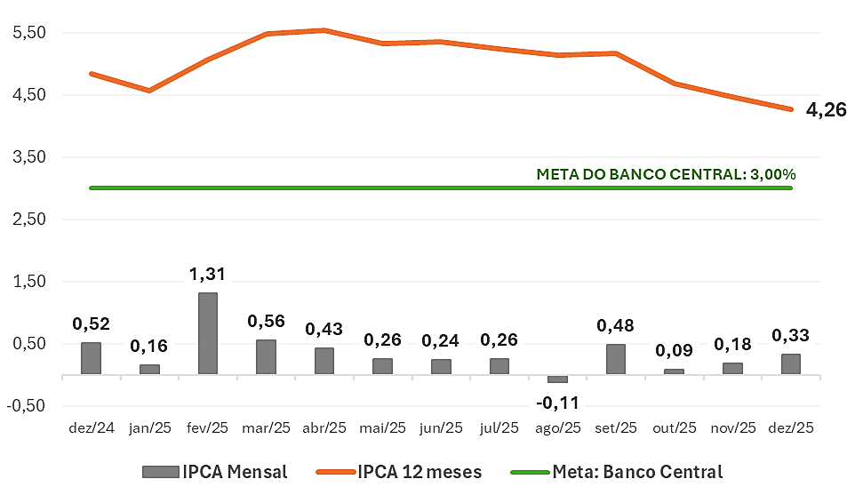 Inflação brasileira desacelera e fecha 2025 abaixo do teto da meta oficial