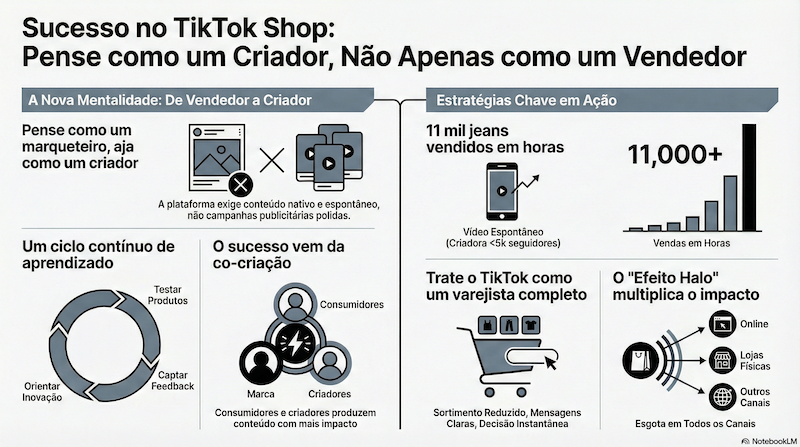 Um dos exemplos citados foi um episódio ocorrido na Black Friday de 2023, quando um vídeo espontâneo de uma criadora com menos de 5 mil seguidores viralizou durante a noite. O resultado foi a venda de 11 mil unidades de um único modelo de jeans em poucas horas. O efeito se estendeu para outras categorias e canais, gerando um forte “halo effect” para a marca.