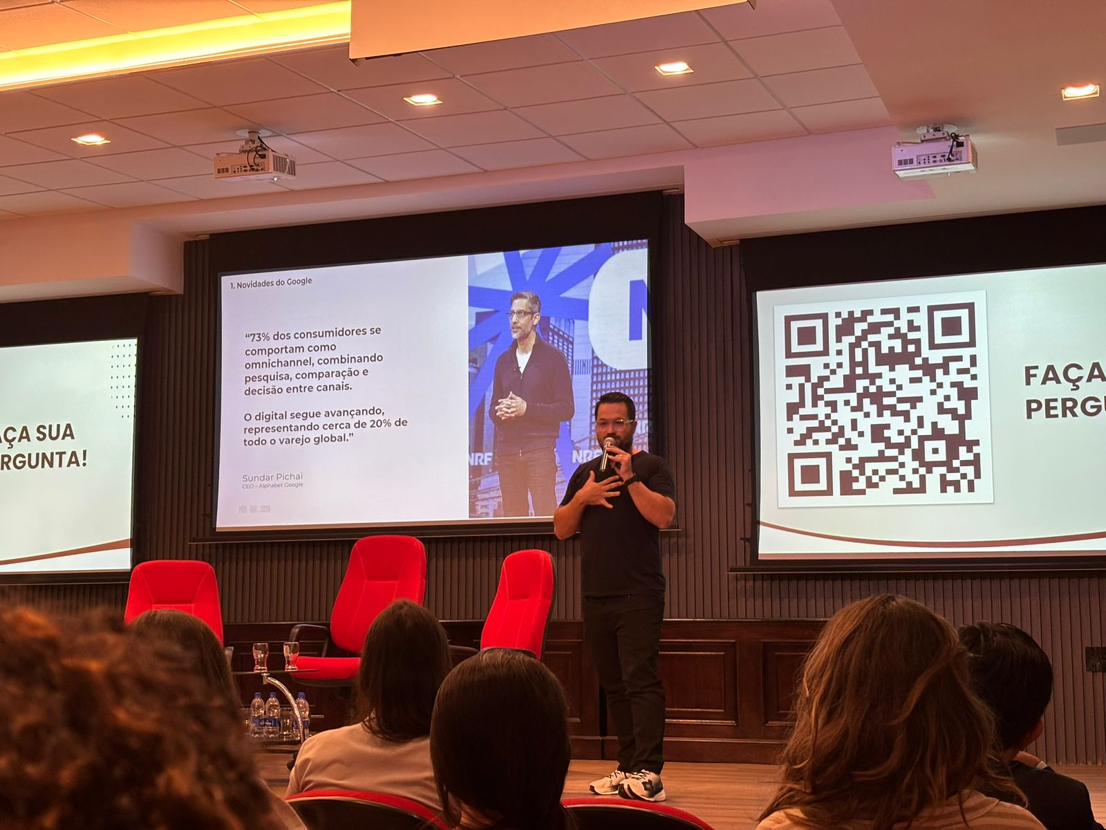 Um dos pontos centrais da apresentação foi a participação do CEO do Google na NRF. Chapchap destacou que a empresa apresentou uma mudança relevante na lógica de busca e descoberta de produtos.