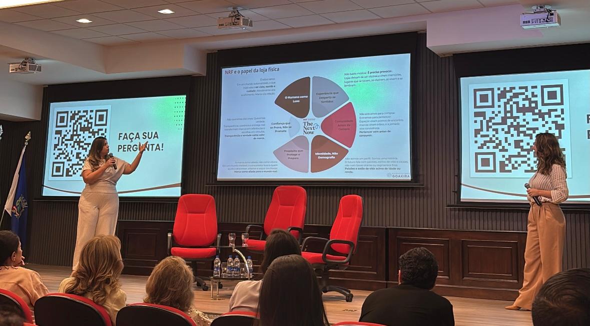 Ao final, as palestrantes reforçaram que a loja física permanece relevante como espaço de relacionamento e experiência, complementando as discussões sobre tecnologia e inteligência artificial apresentadas anteriormente.